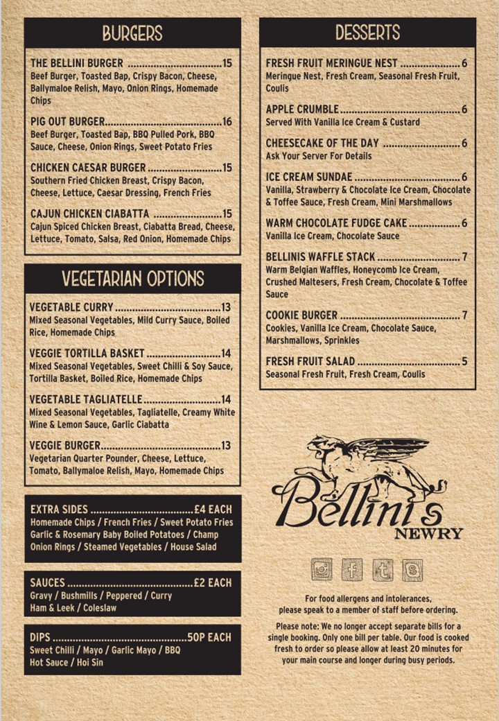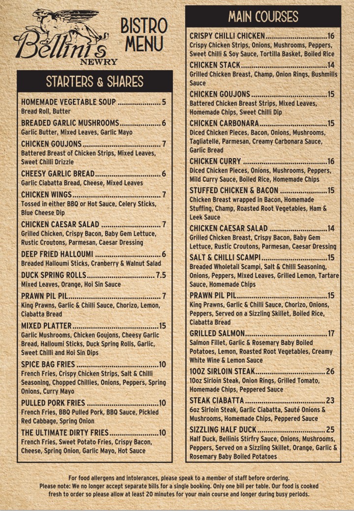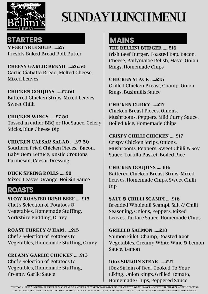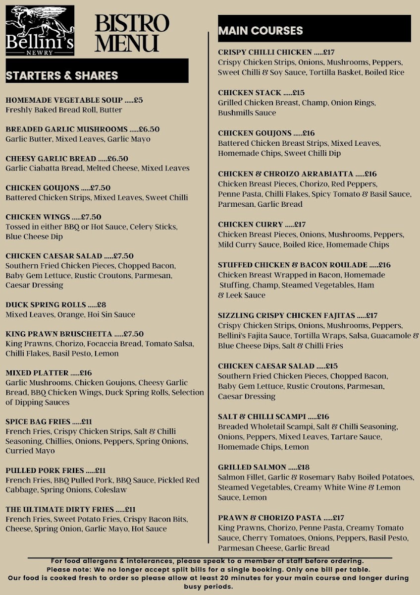 Bellini’s Newry Menu at 25 Merchants Quay, Newry BT35 6AH, United Kingdom, offers an inviting dining experience that blends contemporary Irish cuisine with an elegant yet relaxed atmosphere. From the moment you step inside, Bellini’s feels vibrant and sophisticated-perfect for both casual lunches and special evening occasions. The restaurant’s design exudes warmth, featuring stylish décor and a welcoming staff who set the tone for an enjoyable visit.